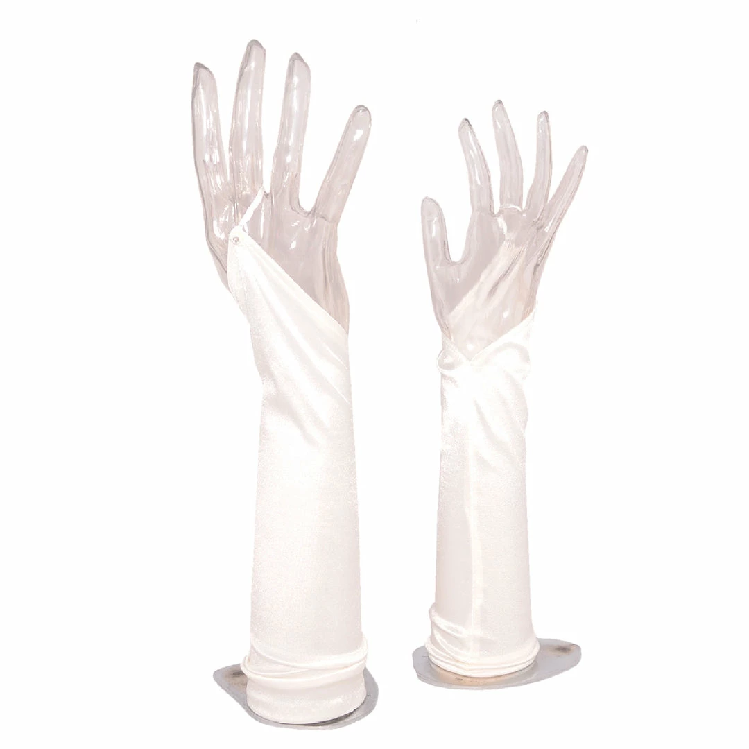Beautiful long stretchy satin gloves that can be worn as an accessory for evening wear. Gorgeous smooth silky satin look perfect for dress up parties, weddings and anything that requires formal wear.