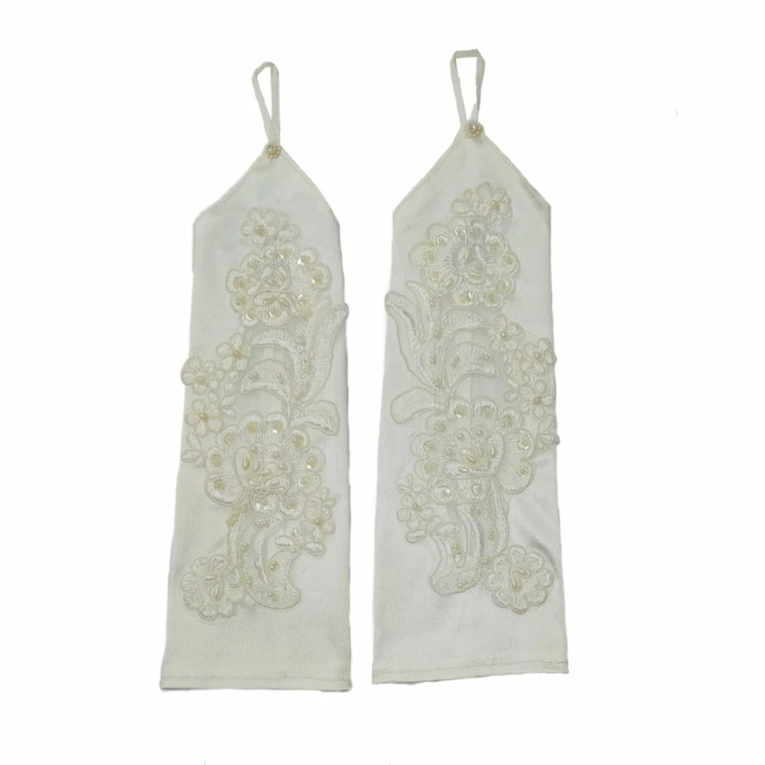 The Wedding Library Bridal Gloves Gloves S Spandex Fingerless With Design Plain 2 (White)