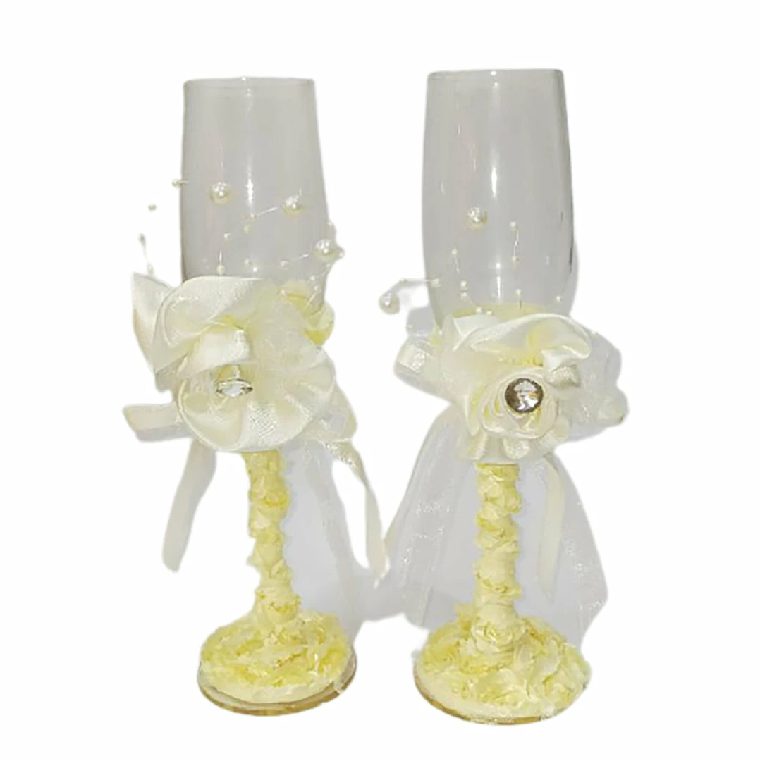 What’s in the Box: 2 x The Wedding Library Wedding Toasting Glasses Set of 2 Rose with Stone BZ2403 (Ecru)